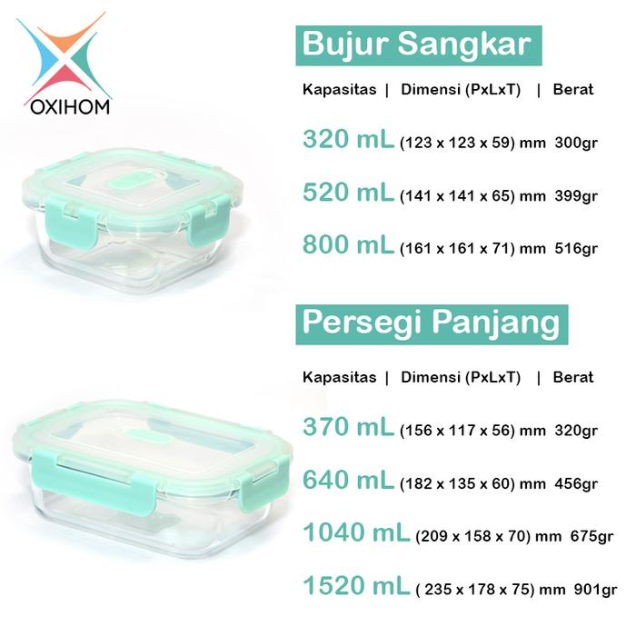 Oxihom Kotak Tempat Makan Kaca Glass Food Container Kedap Udara G8 Karet Wadah - G80321 320Ml, Pink