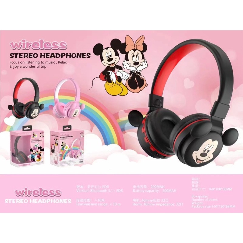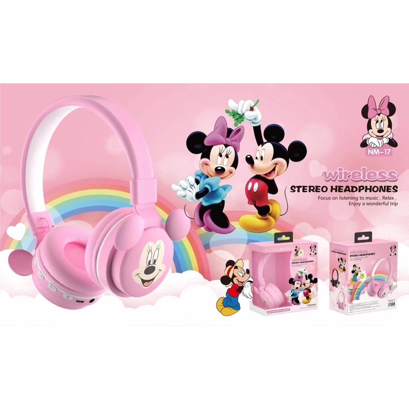 [ NM 17 ] HEADPHONE BANDO BLUETOOTH / WIRELESS SERI NM-17 KARAKTER MICKEY MOUSE MINNIE MOUSE SO SWEET