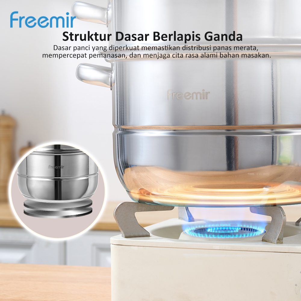 freemir Panci Kukus Rebus 2/3 Susun 26cm Stainless Steel Anti Karat kukus dan rebus 4.5L