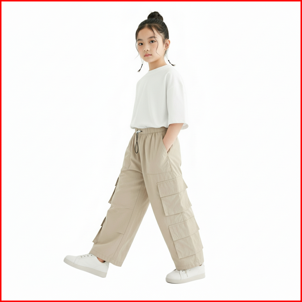 Shibakids Celana Cargo Beige Anak Perempuan Laki Laki 3-14 Tahun Dusky Crinkle Jogger Tali Serut
