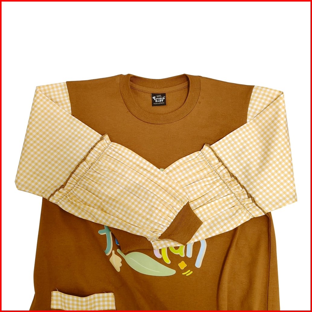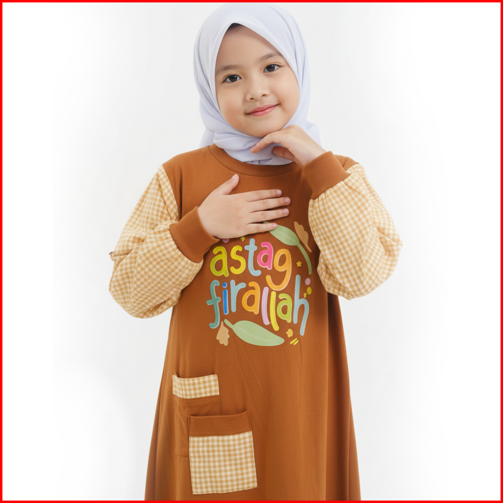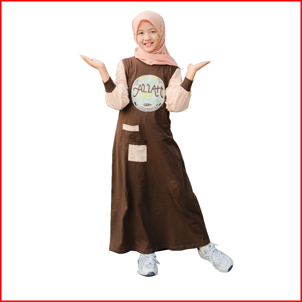 Shibakids - Gamis Anak Perempuan Bahan Kaos Lengan Katun Jepang Mouza Series Coklat Almond