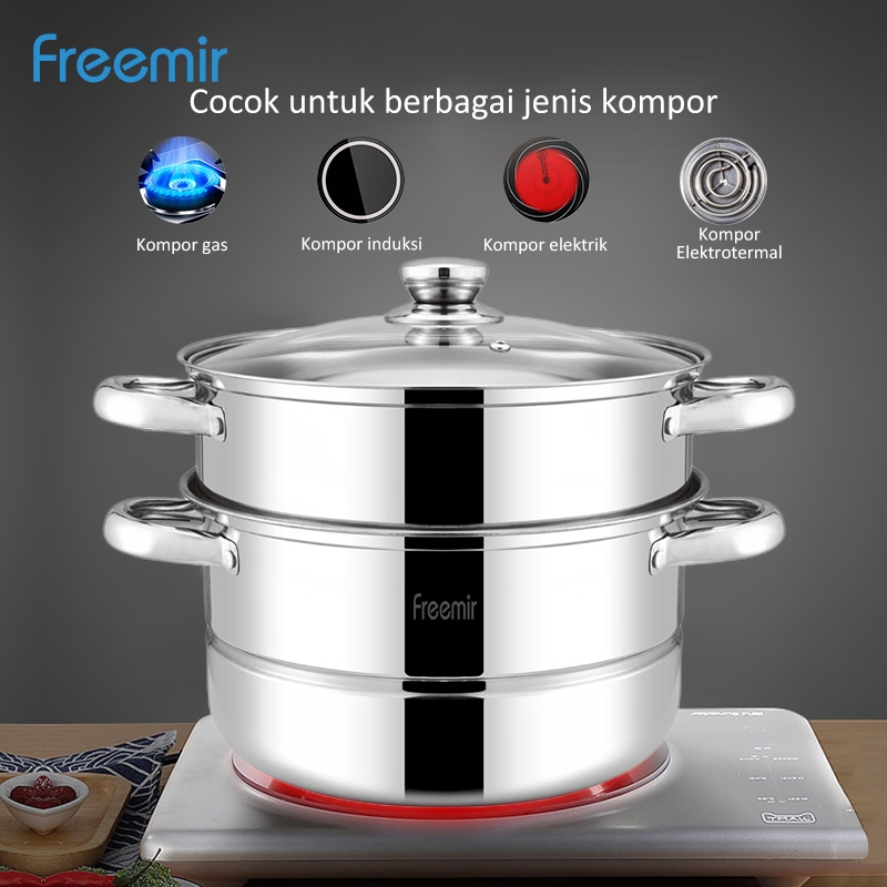 freemir Panci Kukus 3 Susun Stainless 304 - Steamer SNI Medical Grade - Masak Nasi Matang 20 Menit Cocok untuk Sahur