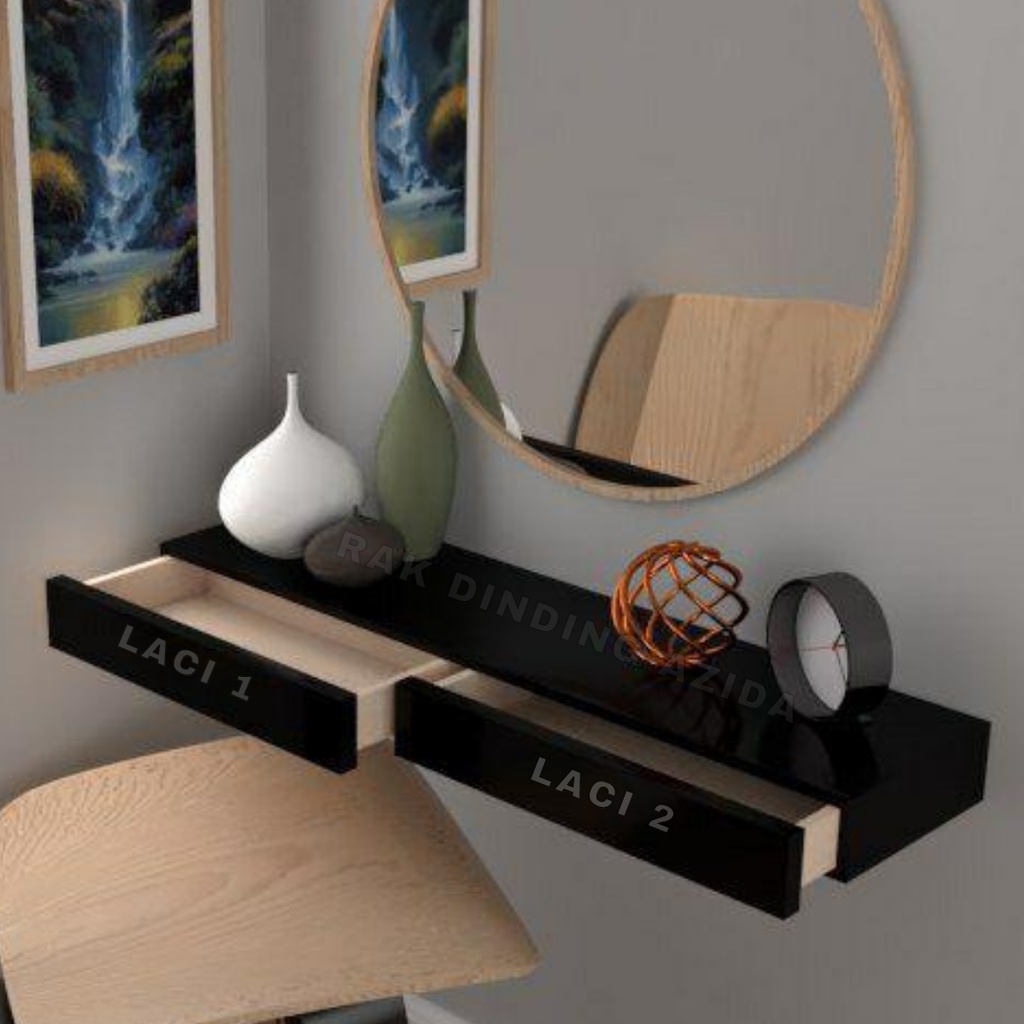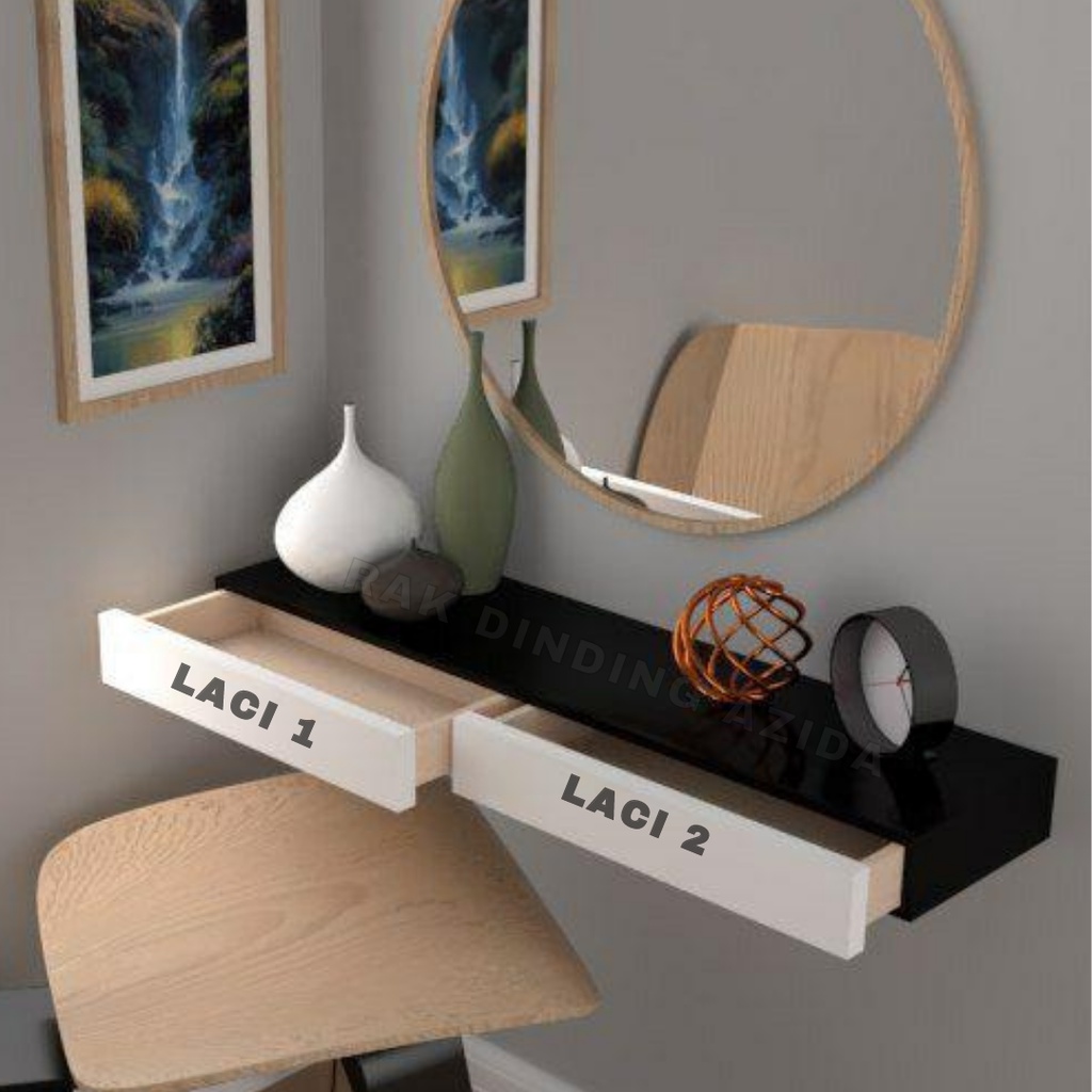 RAK AMBALAN DINDING DOUBLE PINTU LACI [80×20cm]Meja Rias Gantung Minimalis Terbaru RakLaci Serbaguna