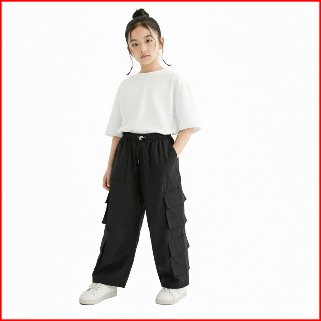 Shibakids Celana Cargo Pink Anak Perempuan Laki Laki 3-14 Tahun Dusky Crinkle Jogger Tali Serut