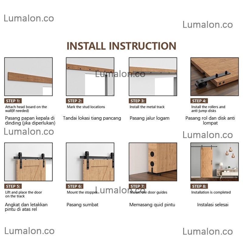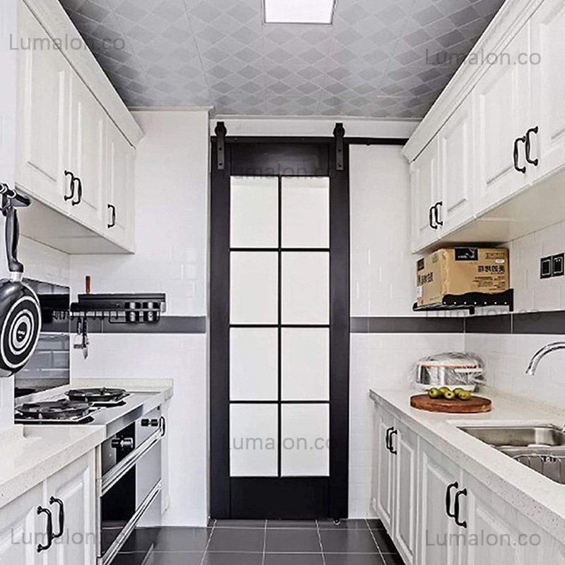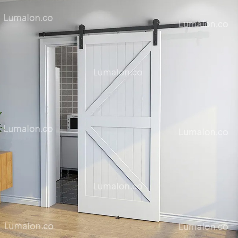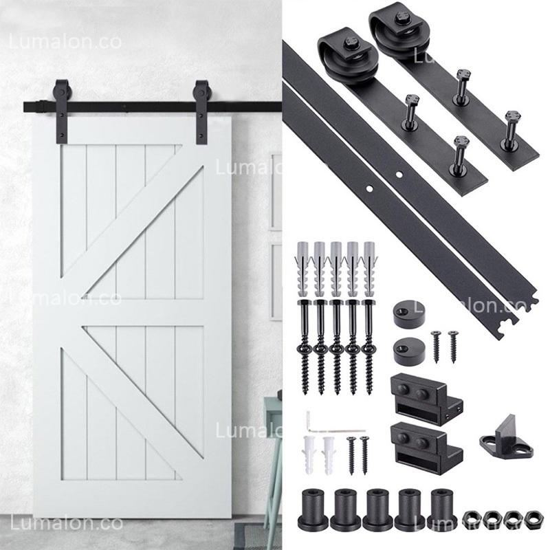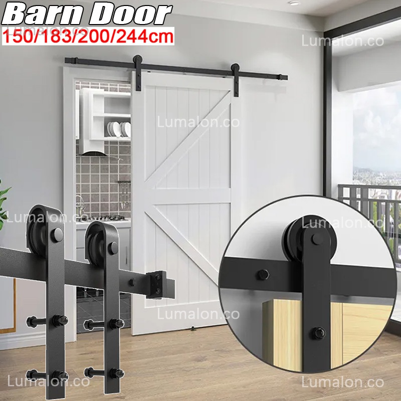 150Cm/183Cm/200Cm/244Cm Rel Pintu Geser Sleding Baja Karbon Bergerak Kit Katrol Senyap 5Ft/6Ft/6.6Ft/8Ft Barn Door / Sli