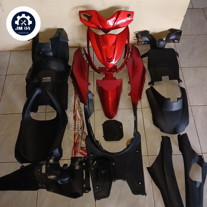 Cover Body Full Halus Kasar Motor Honda Beat Fi 2013-2016 Plus Striping Warna Merah - Stater Kasar