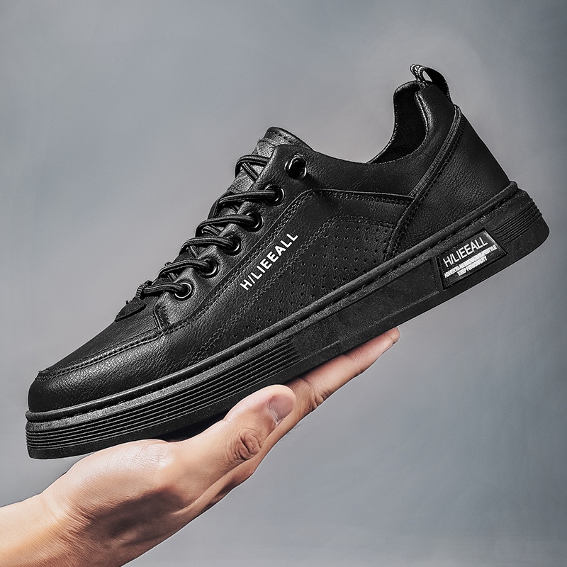 Sepatu Pria Formal Sneakers Muda Kekinian Tali Hitam Kulit Sepatu Shoes Putih