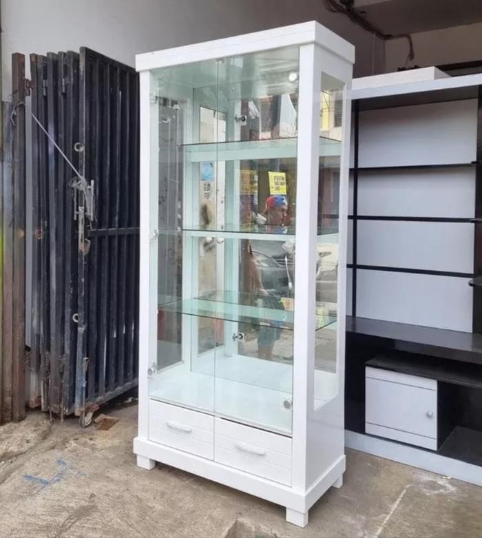 Lemari Pajangan Cristal 2 Pintu Kaca - Kaki Panjang