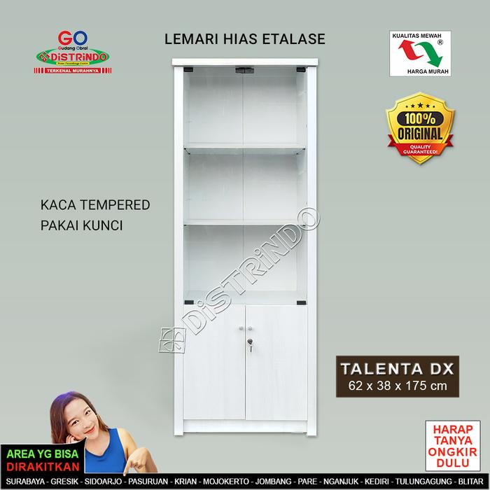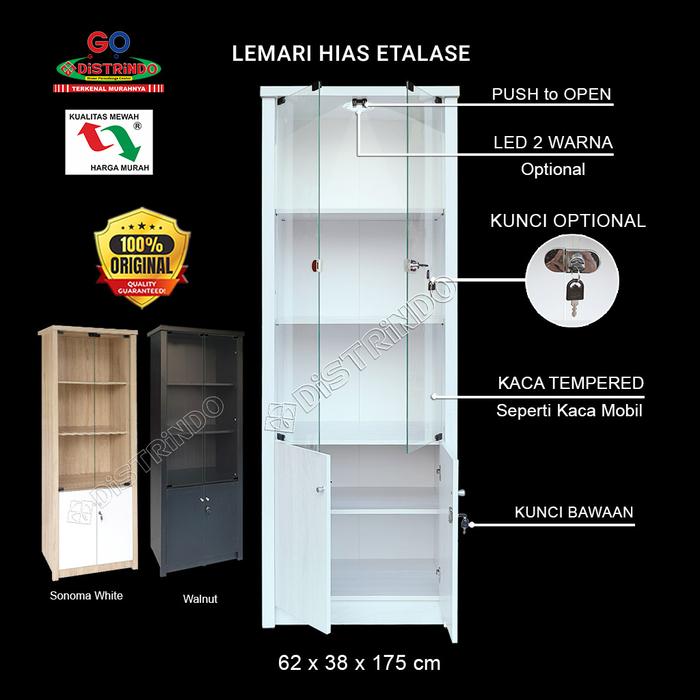 Distrindo - Lemari Hias Etalase Serbaguna 2 Pintu Kaca + 2 Pintu Kayu Pakai Kunci + Lampu - 1 Kunci