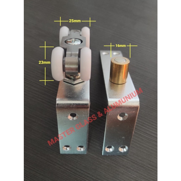 Roda Pintu Lipat 1 Set Atas Bawah Plat L Lurus Guide Kuningan