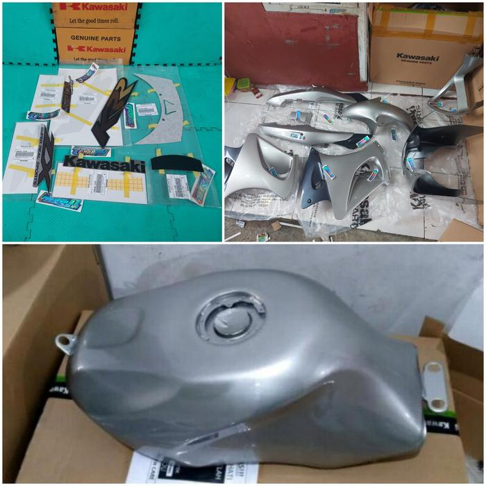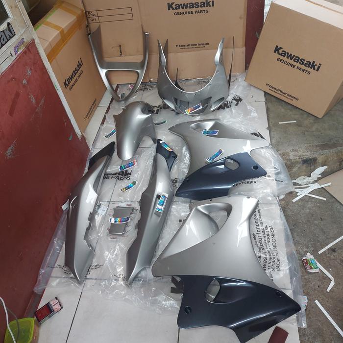 Body Bodi Cover Cowling Set + Stiker Striping Ninja Rr Old slver Ori - Paket B