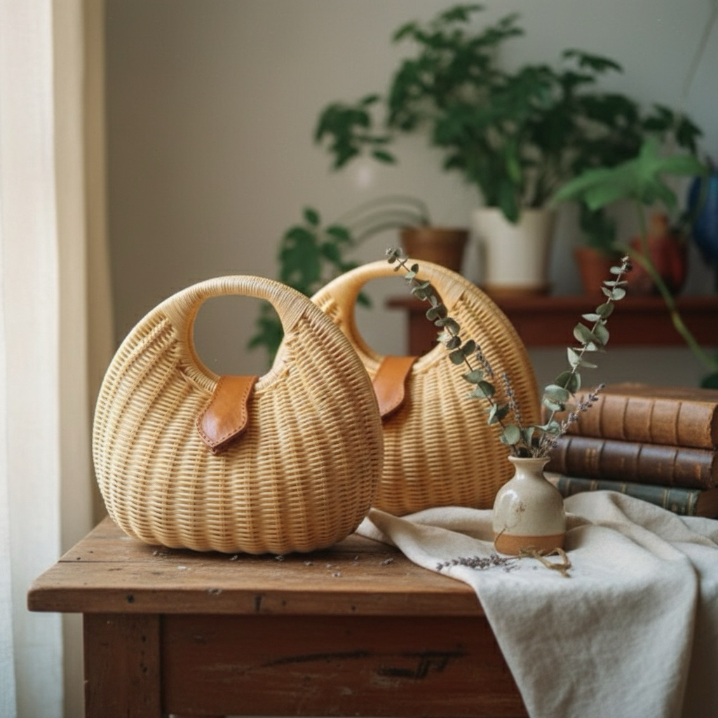 Tas rotan bulat telor size 20x20 cm