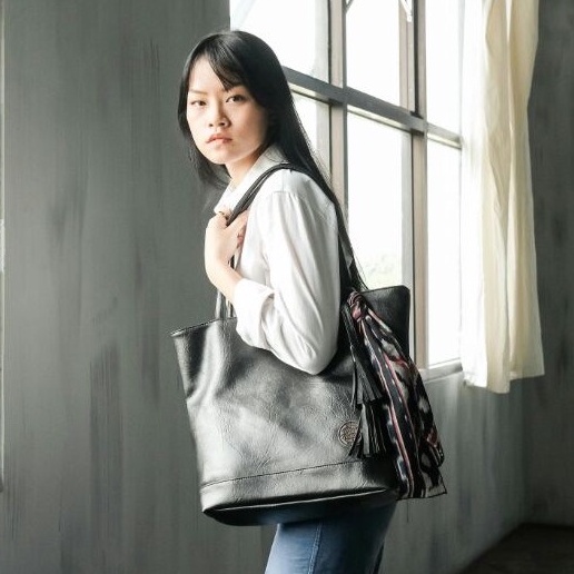 JEAN BLACK TOTEBAG Wanita Sintetis | Muat Laptop 14 inch