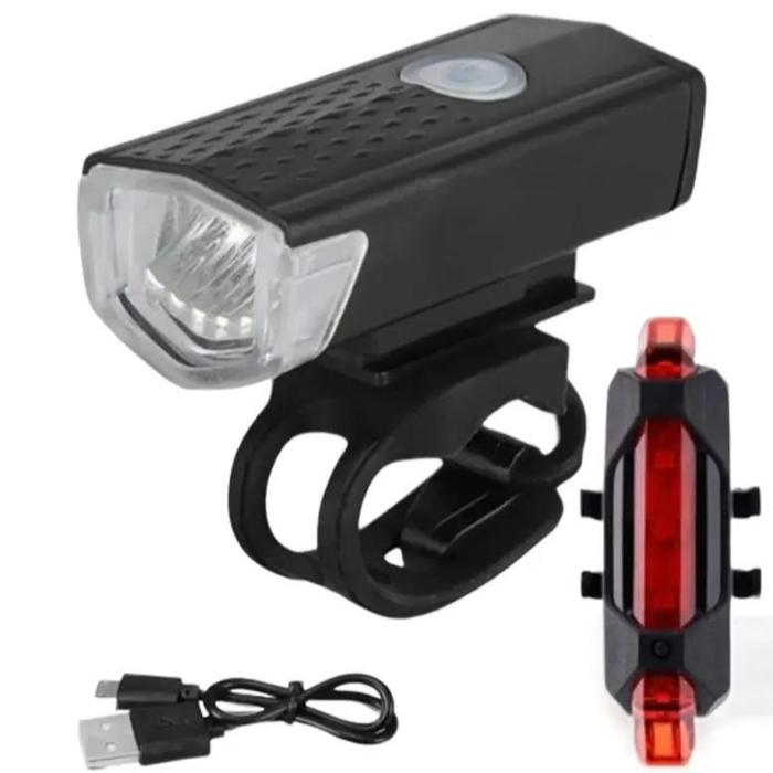 Paket Lampu Depan Dan Belakang Led Sepeda Charge Rechargeable Merah Biru Terang Senter Cas Lipat Mtb Anak Fixie Bmx Usb