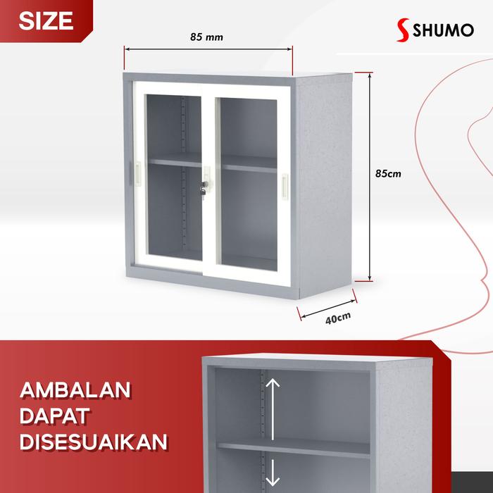 Lemari Arsip Besi 2 Pintu Sliding Kaca|Kantor File| Sleding Geser - Lemari Arsip, Tanpa Rakit