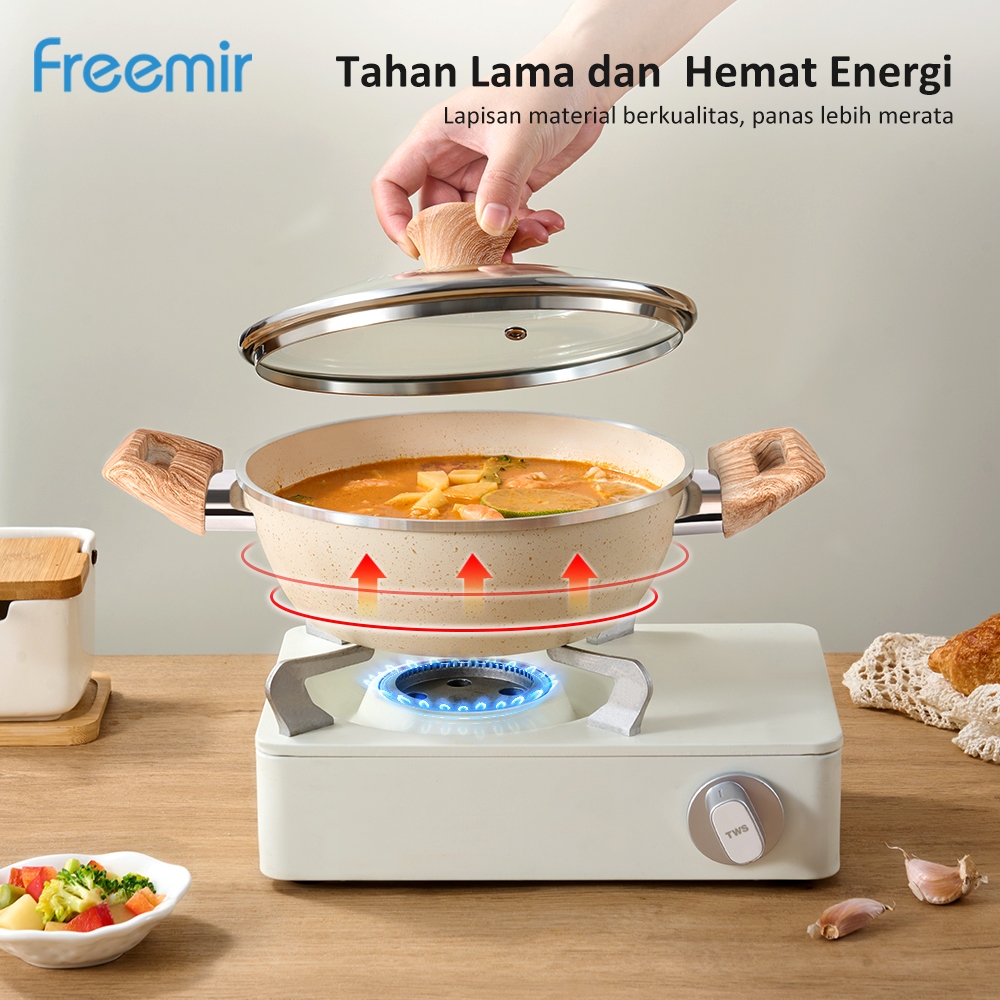 freemir Wajan Beige 20 cm Kedalaman 7 cm Dengan Tutup Bahan Granit Anti Lengket Wajan Serbaguna