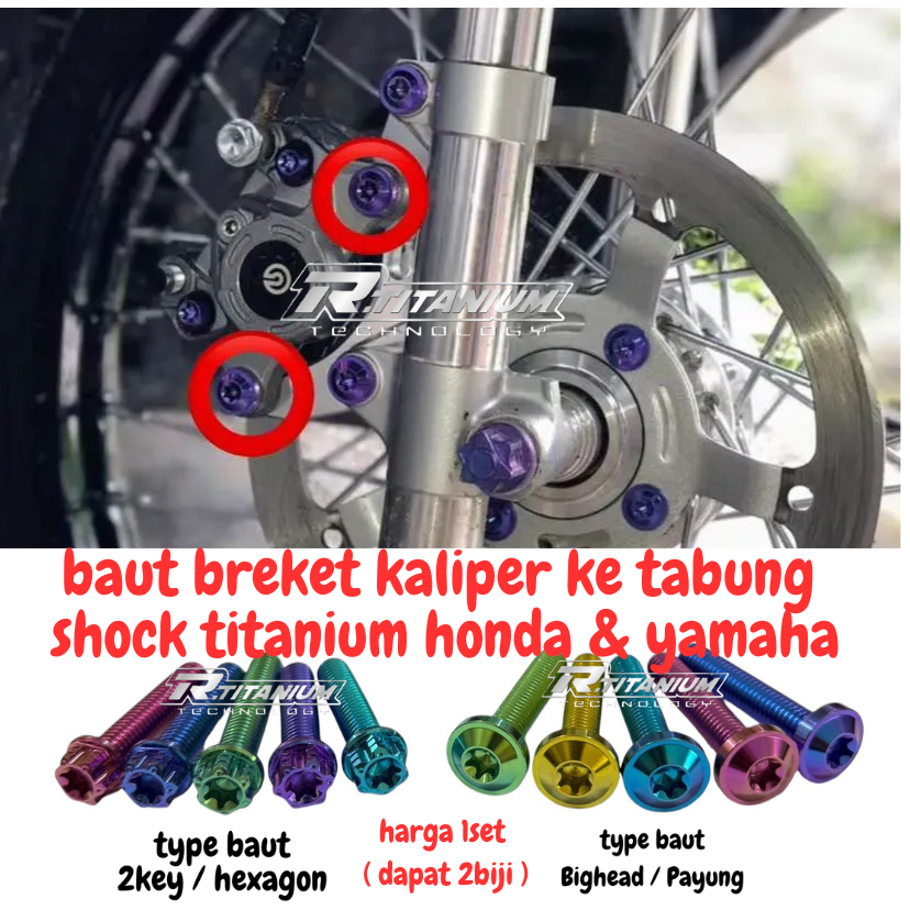 [ SEPASANG / 2pcs ] BAUT TITANIUM BREKET KE TABUNG SHOCK HONDA Beat Vario Scoopy HARGA 2pcs
