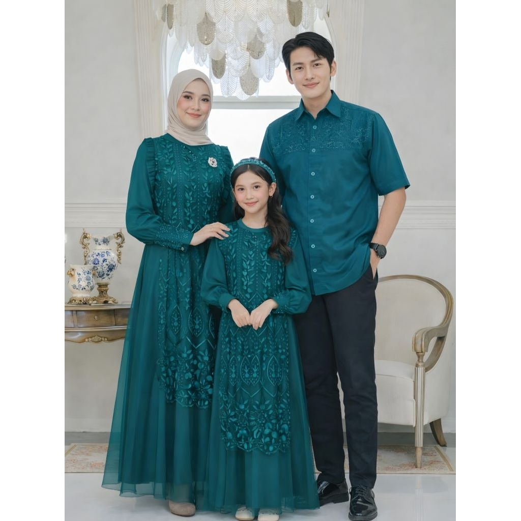 Couple Keluarga Kinan Baju Sepasang Ayah Ibu dan Anak Pakaian Mewah Elegant Busana Muslim Simple Pesta Kondangan Lebaran CL