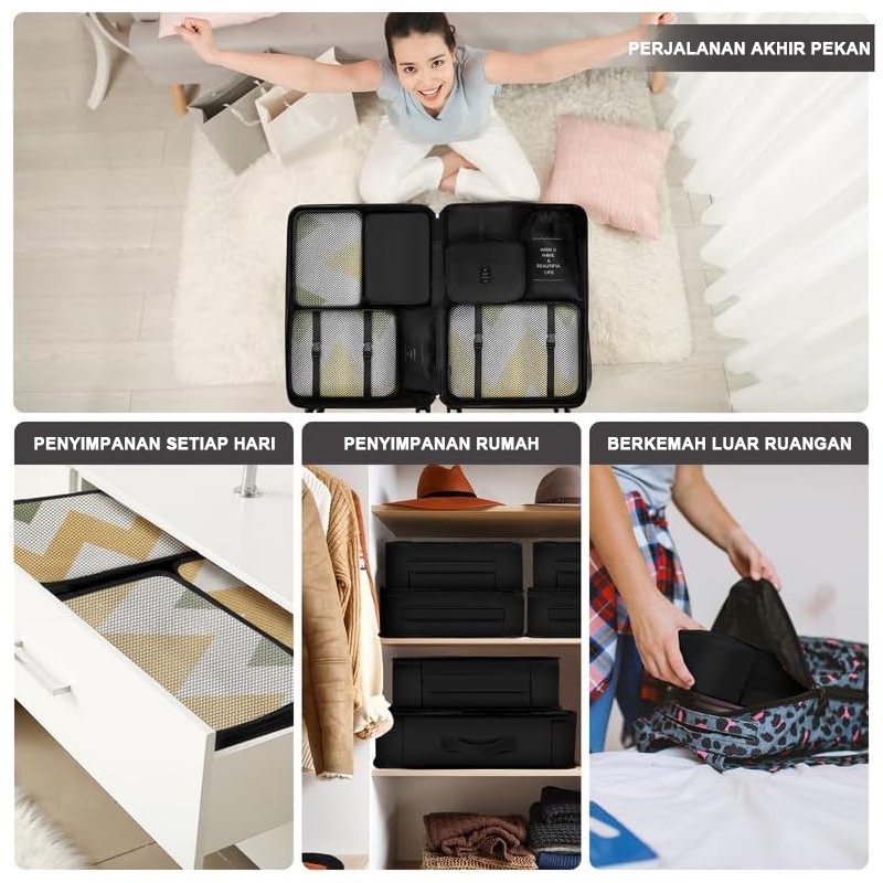 8 In 1 Travel Bag Tas Travel Organizer Bag Pouch Set Storage Luggage Bag Tas Penyimpanan Travel Tas Travel Organizer Koper