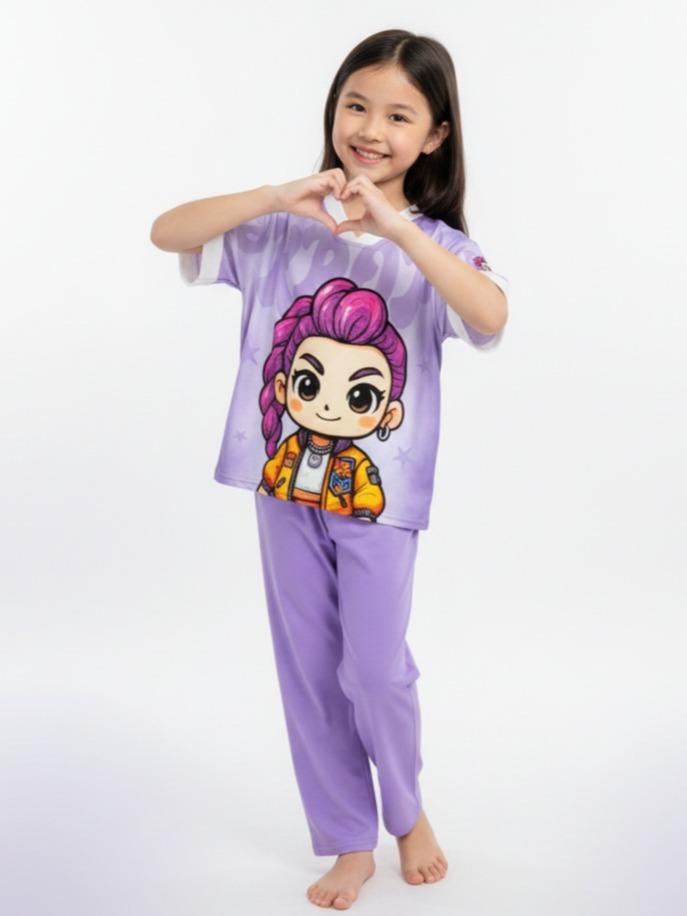 Aurel Xing Setelan Anak Perempuan Model Jersey Celana Panjang Full Printing Fashion - Vvt Mnm Ungu, Xl