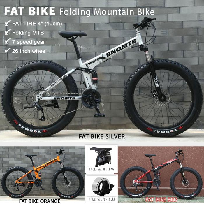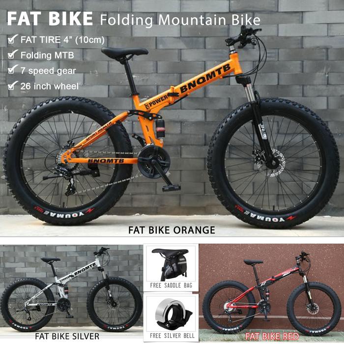Fat Bike Mtb Folding Mountain Bicycle 7 Speed Sepeda Gunung Ban Gendut - Red