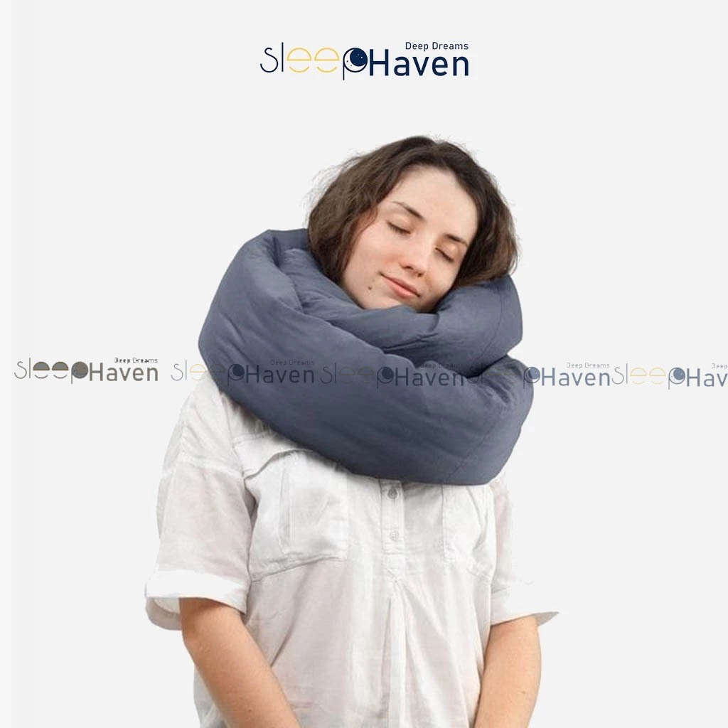 SleepHaven Bantal Leher Travel Invinity Travel Multifungsi