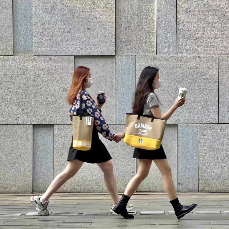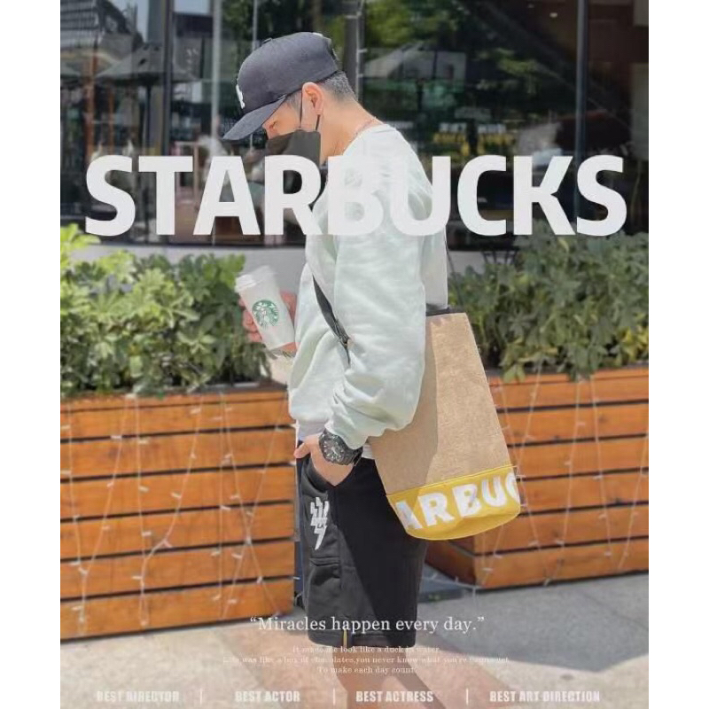 starbucks merchandise bamboo is cool totebag and sling bag reusable bag bahan kanvas originl import motif polos super du