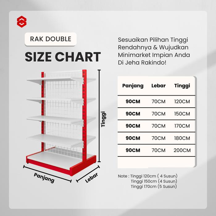 Paket Hemat Rak Double 2Set Starting 1Set + Addjointing 1Set Display Rak Minimarket Supermarket - Jeha Rakindo - Merah