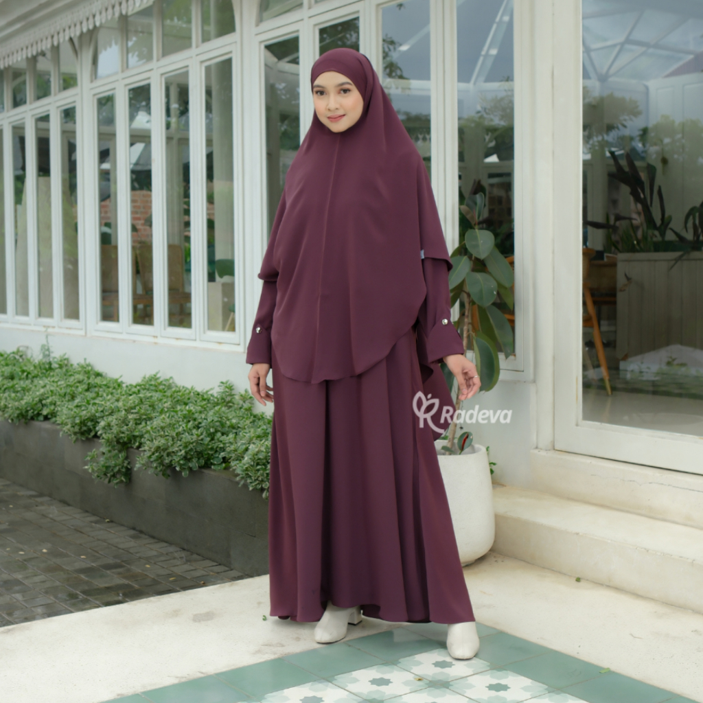 Radeva - Gamis Satu Set Abaya Khimar Burgundi