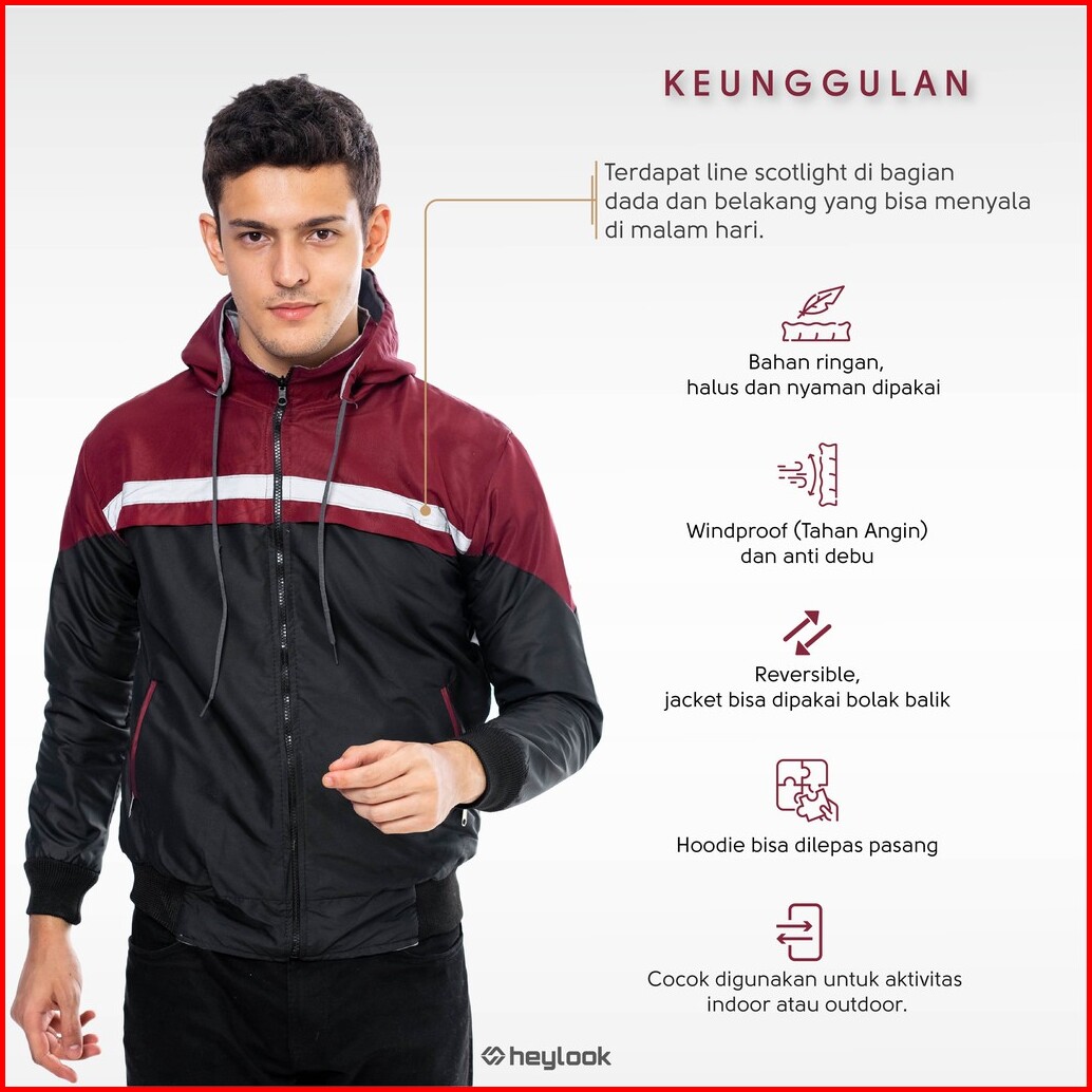 Heylook - Jaket Pria Bolak Balik Jaket Kano Pria Jaket Hodie Bisa Dilepas Original