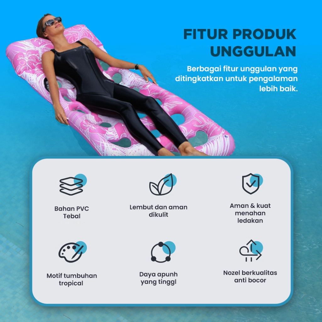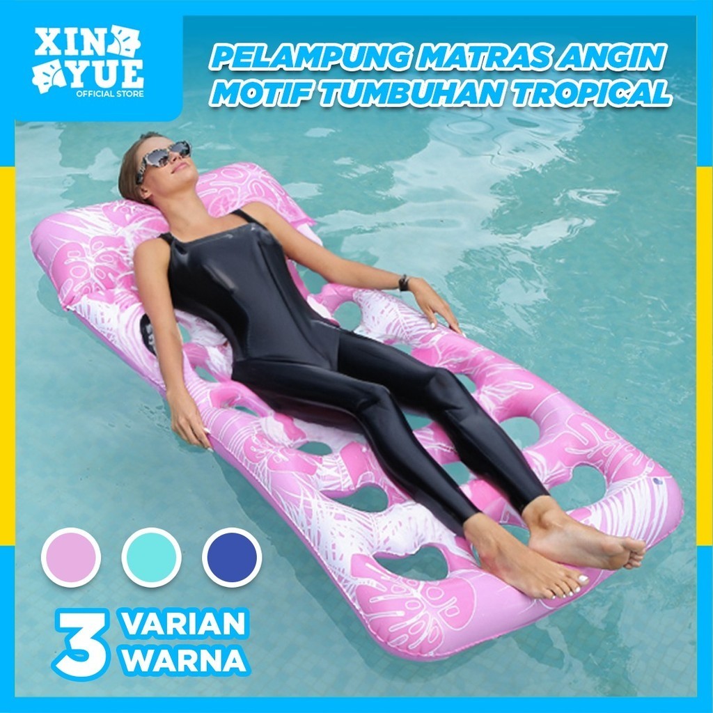 Xin Yue Pelampung Matras Angin Motif Tumbuhan Tropical Dengan Sandaran Kepala Apung Floaties Swim