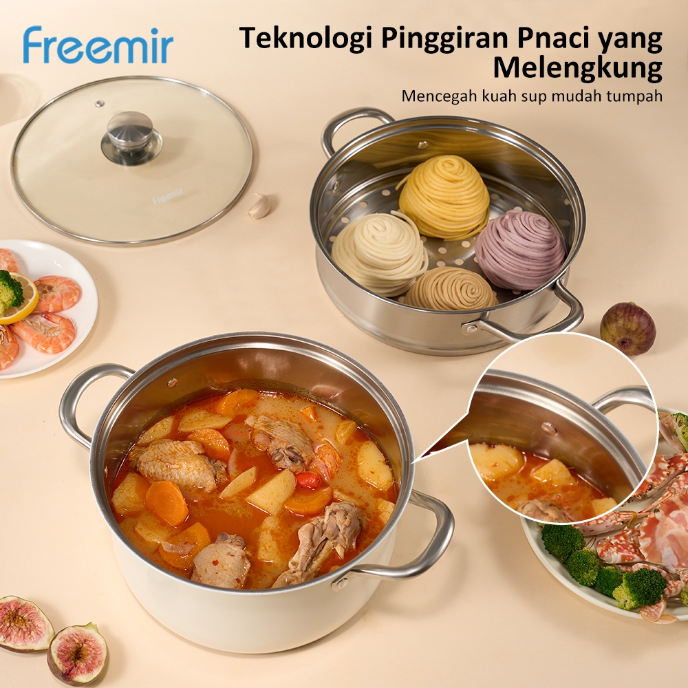 freemir Panci Kukus Tingkat 24cm Stainless Steel Anti Karat Kukus Rebus Dalam Satu Waktu