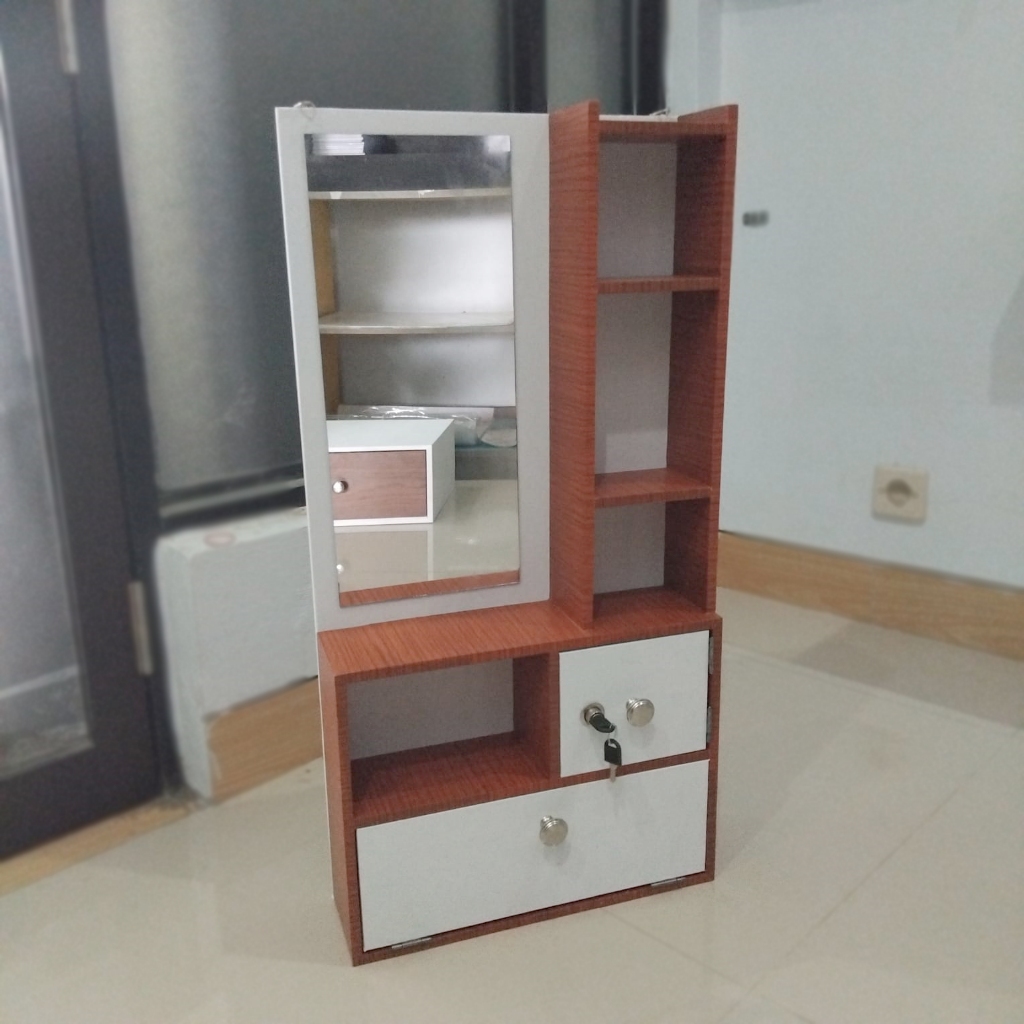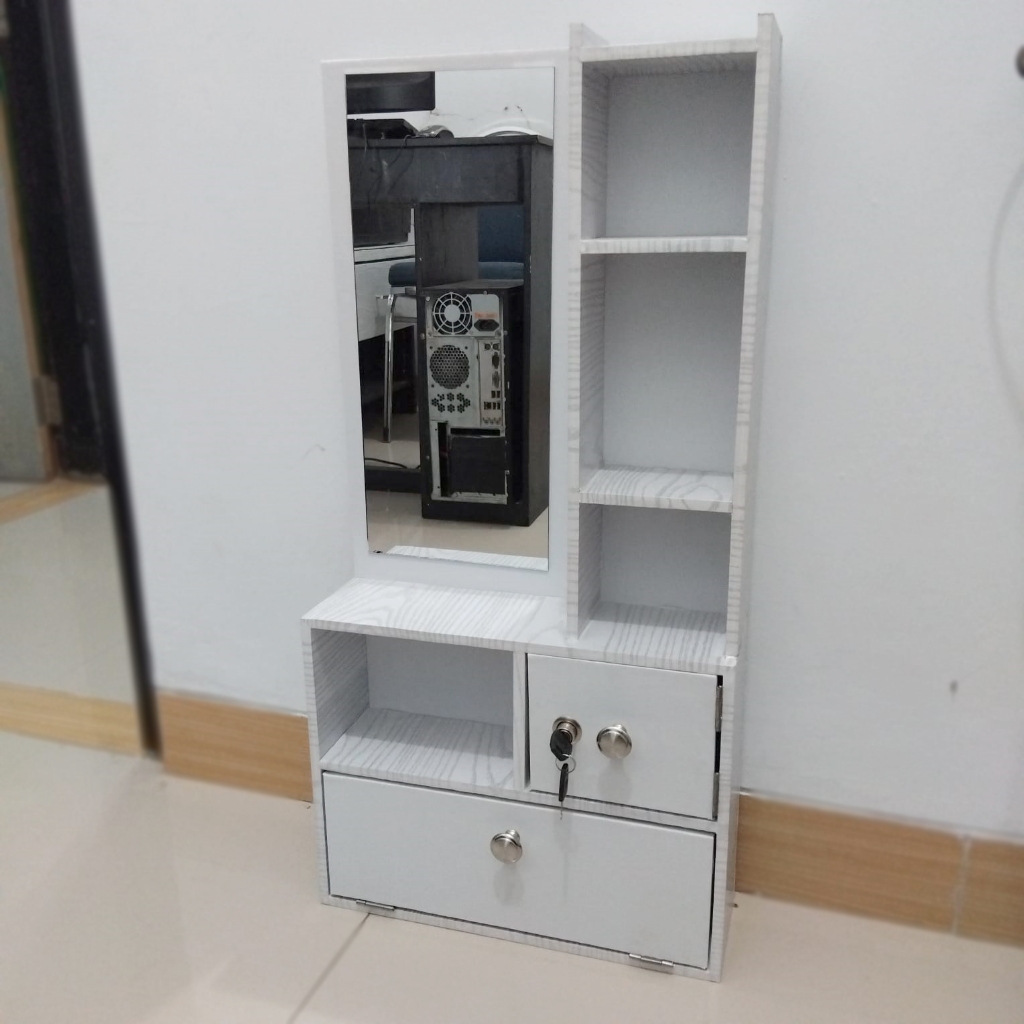 Rak Rias Cermin gantung Ukuran 70 x 35 Cm motif Serat Kayu Putih