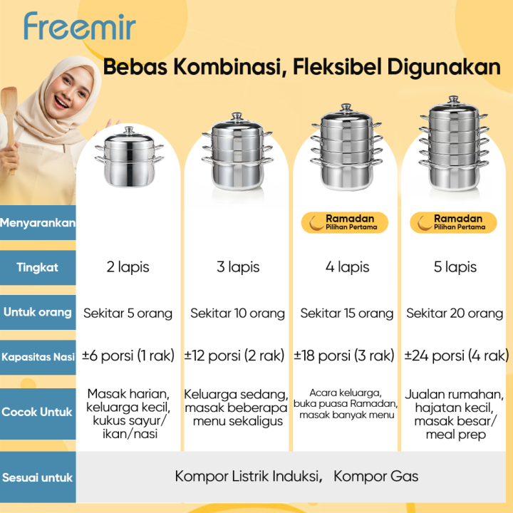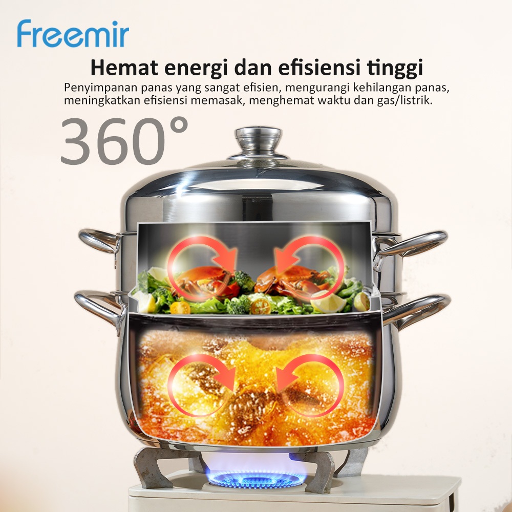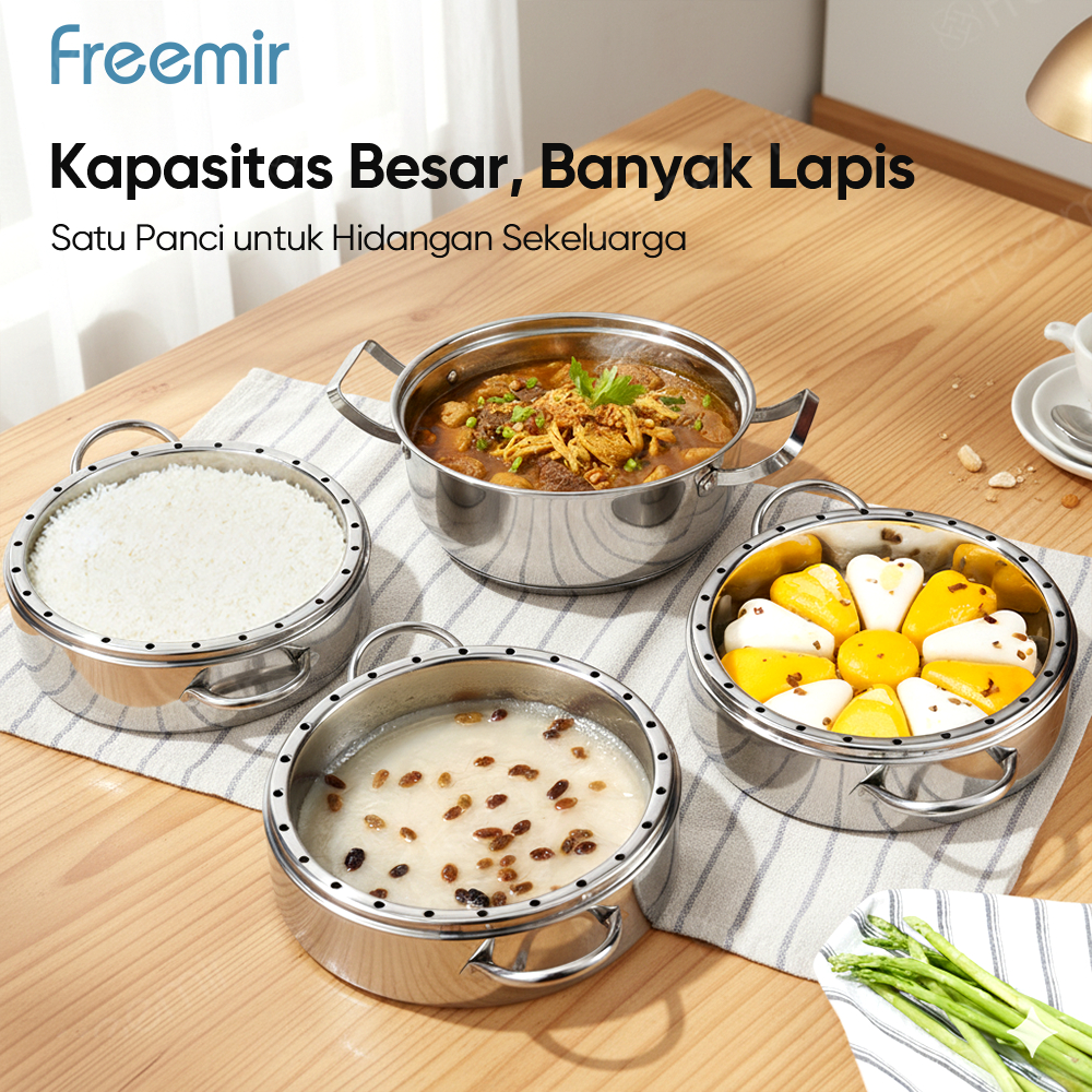 freemir Panci Kukus Rebus 2 Susun Masak Nasi 20 Menit Lebih Cepat Stainless Steel panci kukusan stainless steel 304
