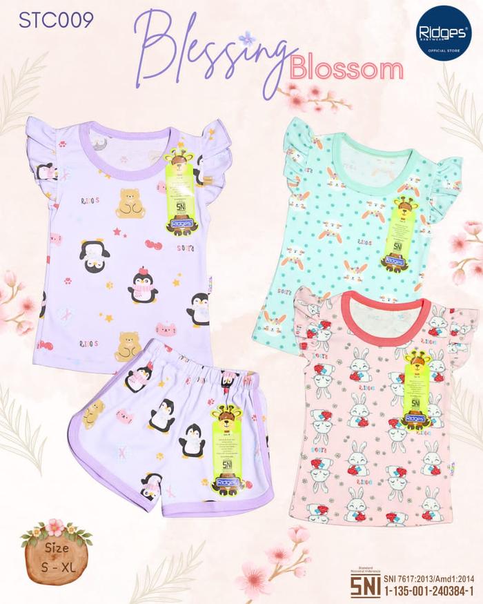 3Pcs Setelan Ridges Ruffle + Celana Soprt Pakaian Anak Perempuan Motif | Size M.L.Xl.Xxl. - Blessing Blossom, M