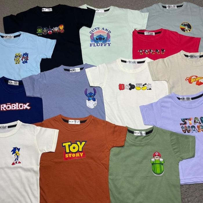 DARELKIDS.ID PAKET BUNDLING KAOS ANAK LAKI-LAKI DAN PEREMPUAN LENGAN PENDEK 1-10THN COTTON COMBED ISI 5PCS ATASAN MOTIF