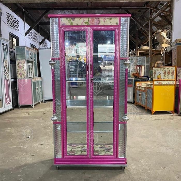 Lemari Hias 2 Pintu Almuminium Pink Rak Kaca / Lemari Pajang Kaca Gm