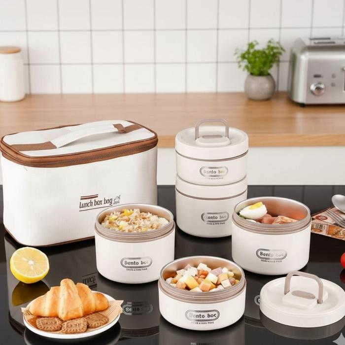 Alliance Lunch Box Stainless Steel Bento Box Set Kotak Makan Siang Portabel Anti Bocor Dengan Segel & Penjagaan Segar, C