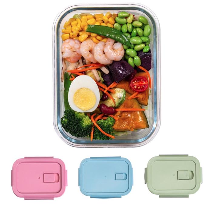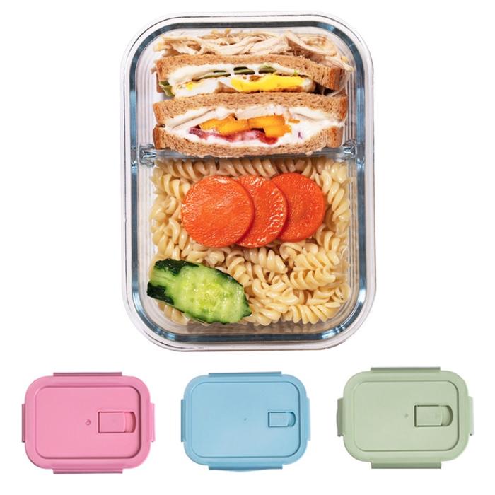 Lunch Box Kotak Tempat Penyimpanan Makan Bahan Kaca Microwave Oven Safe Bersekat Kitchenware - 960Ml 3 Sekat, Biru