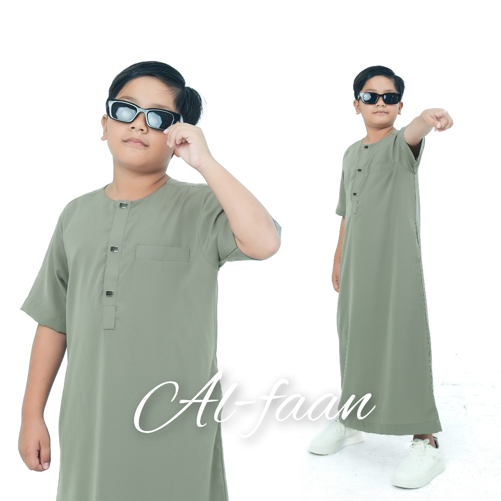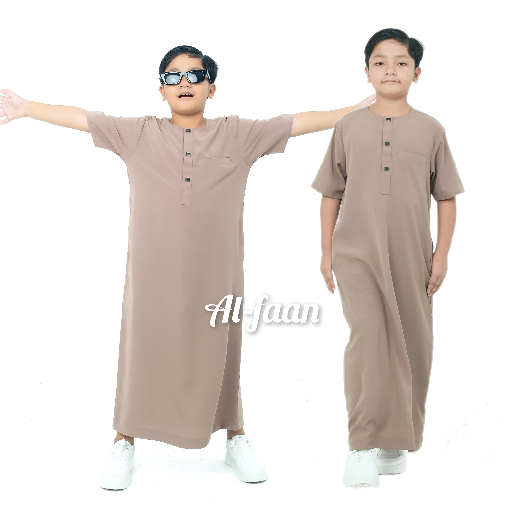 Jubah pria anak remaja jubah anak muslim lengan pendek katun jubah alfaan anak robes