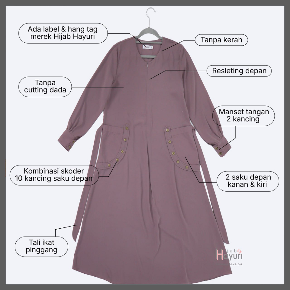 Gamis Harian Formal Wanita Syar'i Bahan Wolfis Adem Desain Manset Kantong Kancing Simple Saudah