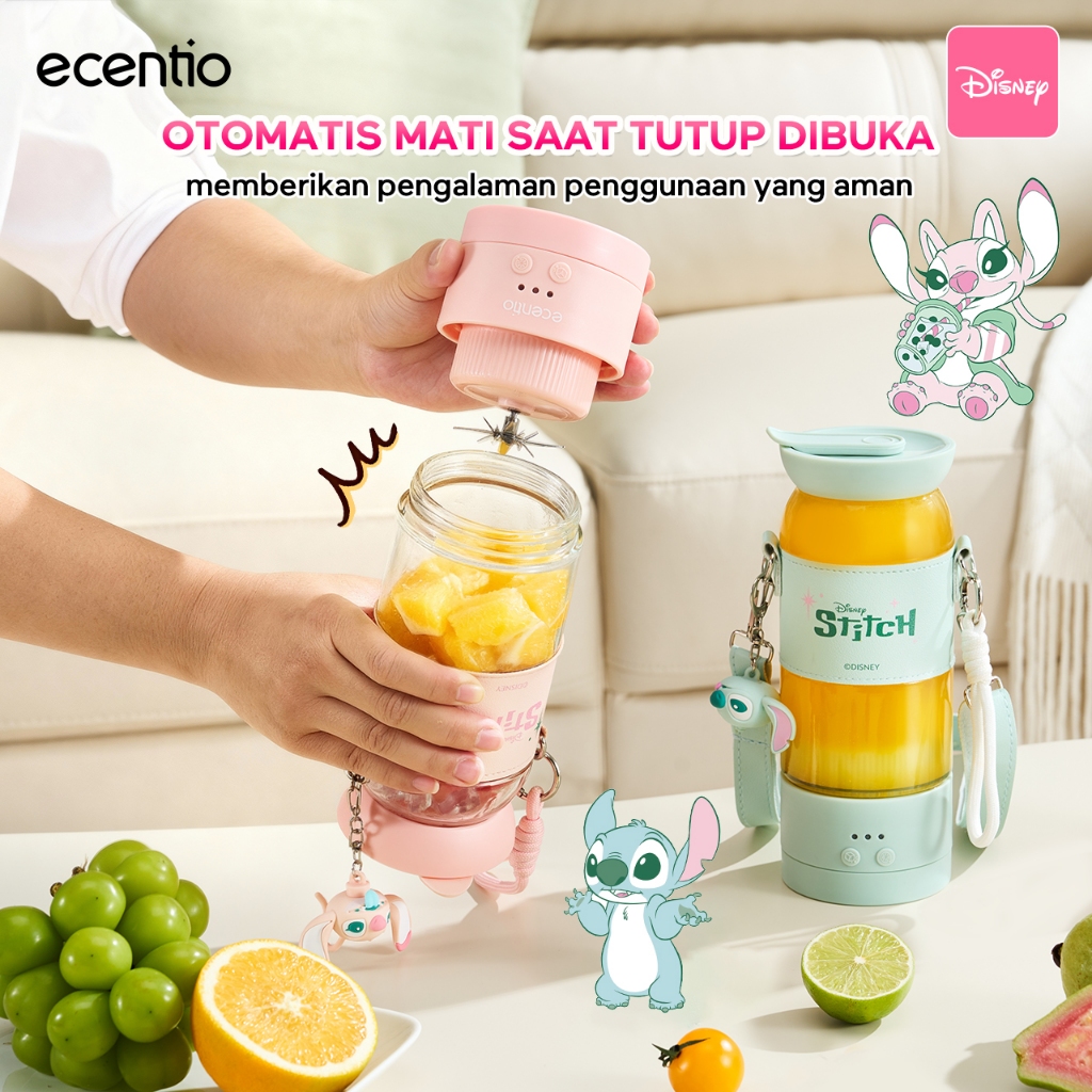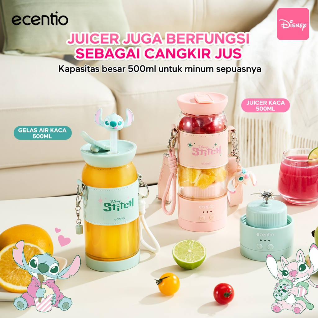 [Mall] BLENDER PORTABLE ecentio Blender Juicer Disney 18 Pisau Kaca 500ml 2 Speed Portable Tali Sling + Sedotan