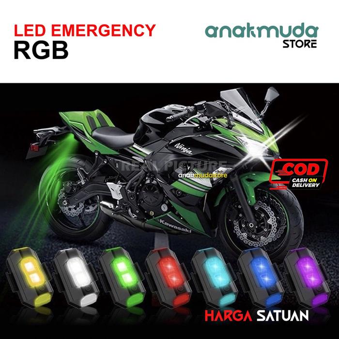 Lampu Kolong Tempel Led Emergency Sepeda Motor Universal Lampu Port Charger Usb Mode Kedip Rgb Charging Waterproff