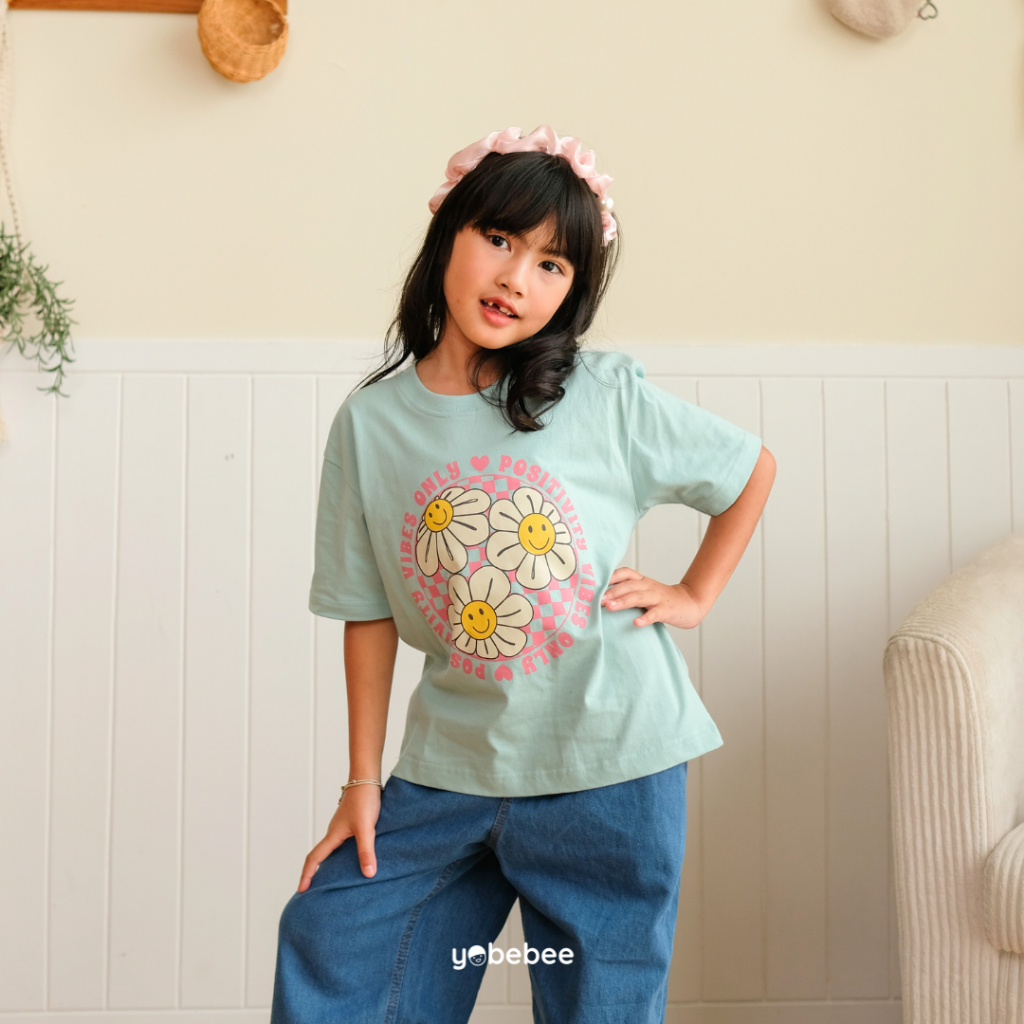 YOBEBEE LILY OVERSIZE TEE ATASAN KAOS ANAK PEREMPUAN USIA 2 3 4 6 8 TAHUN KAOS MODEL TANGAN PENDEK
