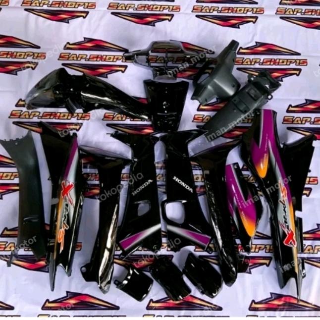 Cover Full Bodi Supra X 100Cc Halus Kasar Berikut Striping Corak Ungu