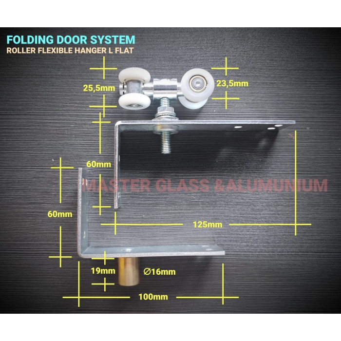 Roda Pintu Lipat Flexible Deluxe Atas Bawah Plat L Lurus Guide Nylon
