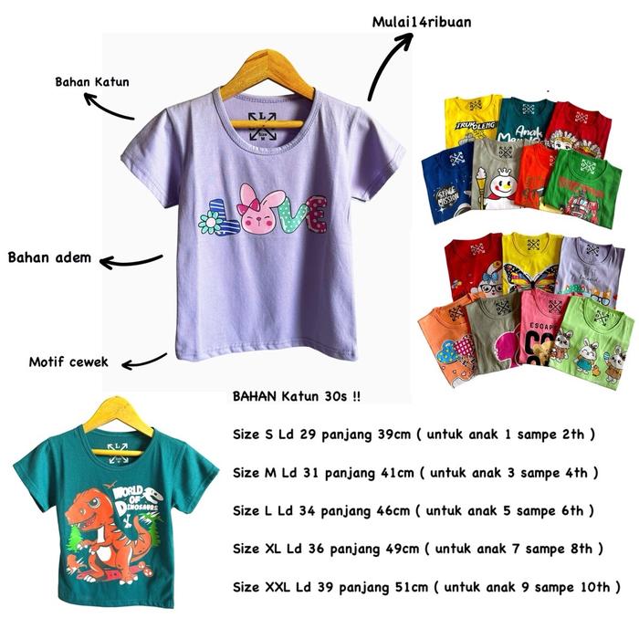 KAOS ANAK ISI 7PC / BAHAN KATUN TC / KAOS ANAK PALING MURAH - RANDOM CWEK ISI 7PC, S