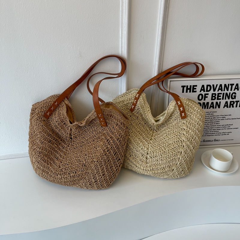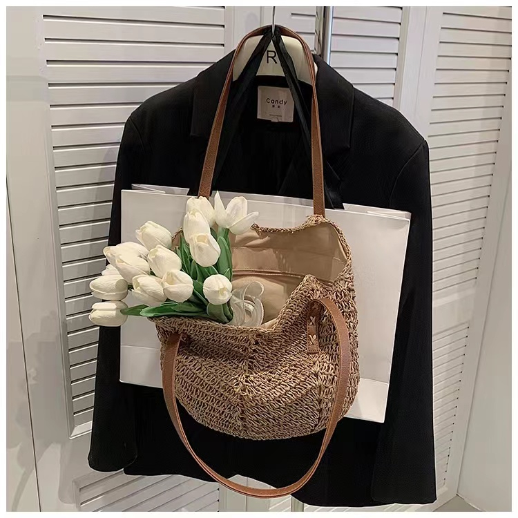 Aroana Modis tas anyaman jerami baru kecil segar tas bahu fashion tas anyaman tote tas pantai gaya liburan Tas anyaman