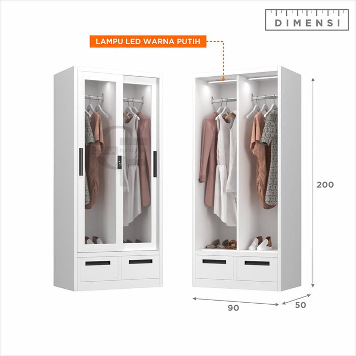 Shumo Lemari Pakaian Gamis Besi 2 Pintu Sliding Full Kaca Led | Lemari Sleding Display Baju - Motif-A, Dirakit