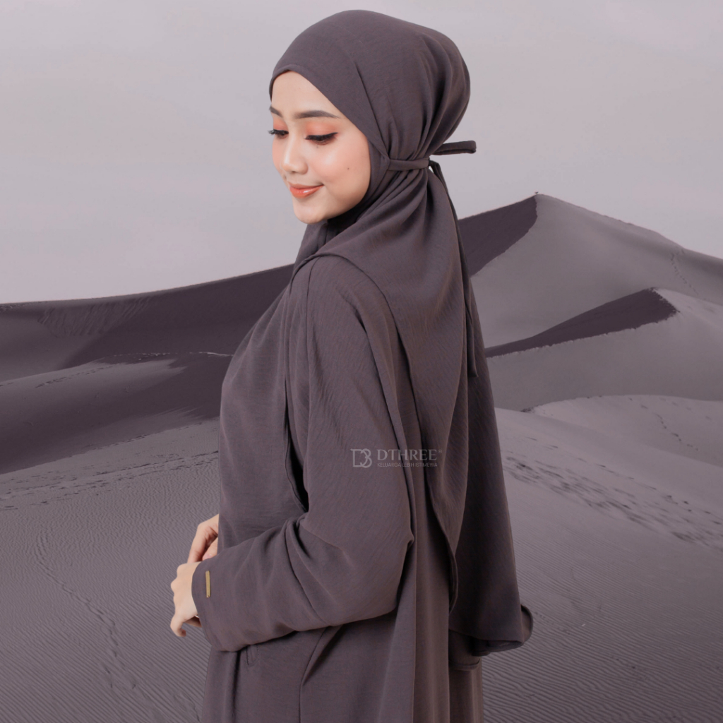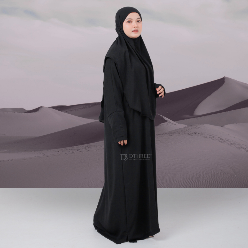 Dthree - Abaya Najwa ( Hitam ) Dress Syar'i / Gamis Umroh Abaya Set Kerudung / Abaya Umroh Set